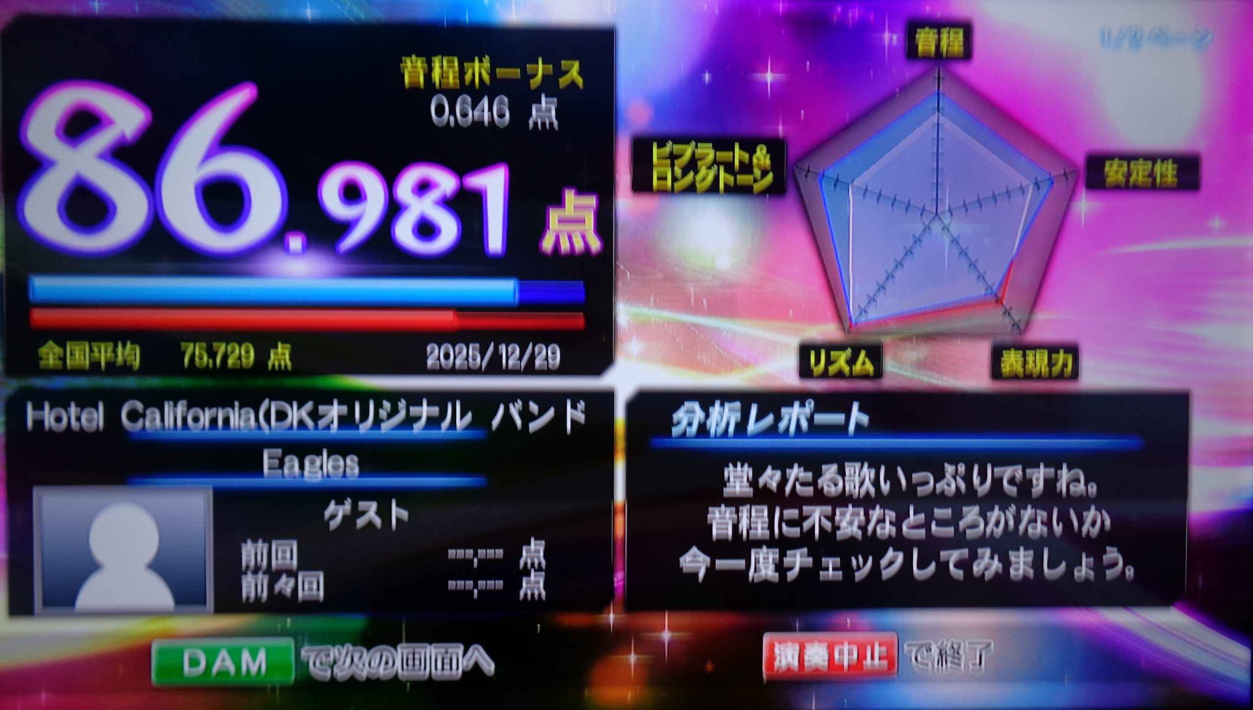 イーグルスの大ヒット曲、Hotel California(ホテル・カリフォルニア)(1977年発表)を歌ってみました♪ 私にはドン・ヘンリー(Dr. 兼 Vo.)のような高くて綺麗な声は出ないので、地声で歌っております。当初の生歌バージョンを、カラオケで録り直しました。この曲の真の聴きどころは、曲末尾のツインリード・ギターによるハモリです(^-^)