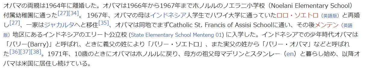 (出典)ウィキペディア日本語版「バラク・オバマの国籍陰謀論-オバマの生い立ち」の項